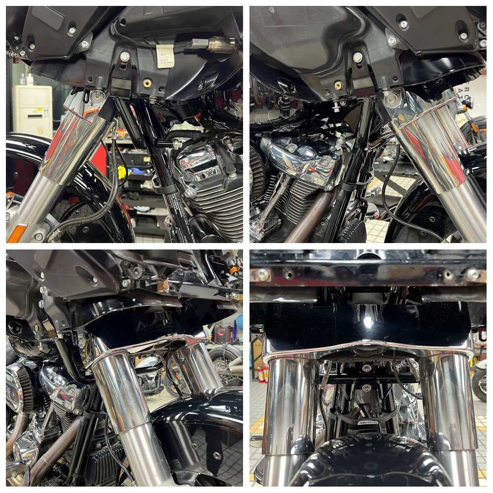 Fits ’15-later Road Glide models (except '23-later FLTRXSE '24-later FLTRX FLTRXSTSE and models equipped with fairing lowers). The kit includes replacement black fairing mount brackets.