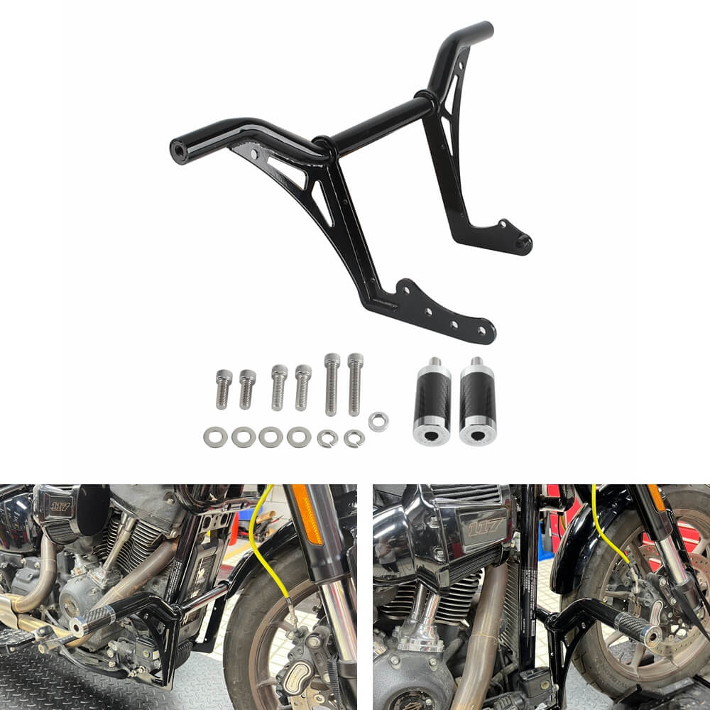 New Style Front Highway Engine Guard Crash Bar Passenger Peg Frame Slider Carbon End For Harley Softail Street bob Low Rider S ST Fat Bob Standard 2018-2024