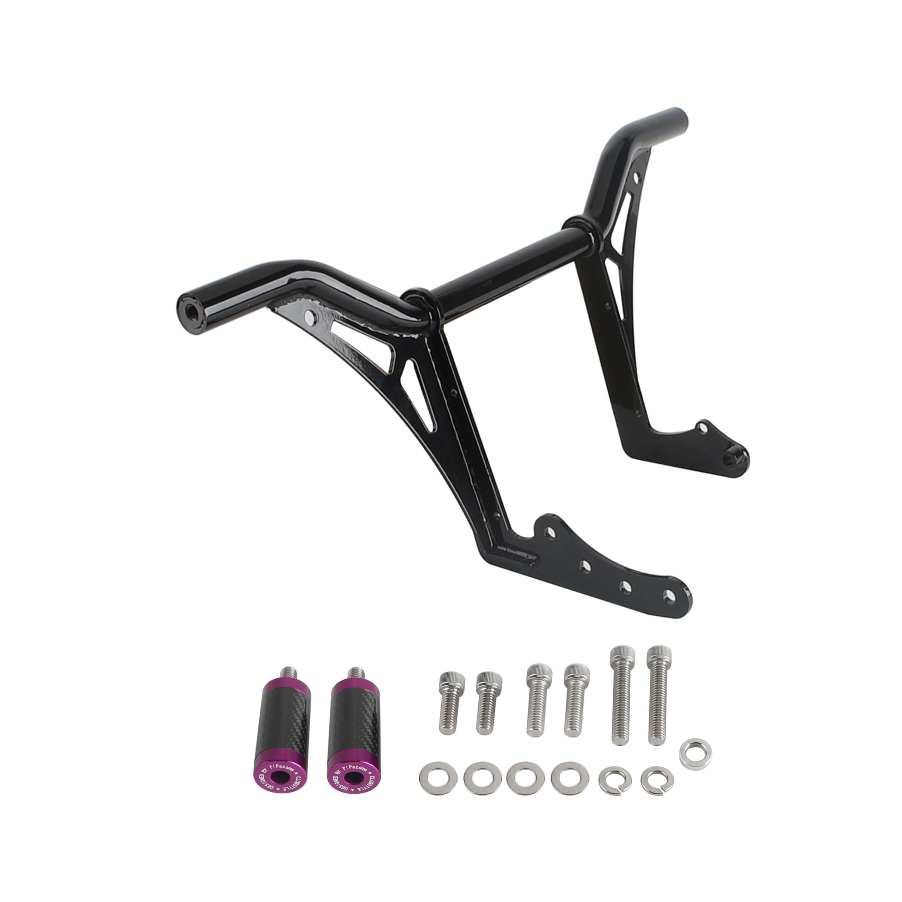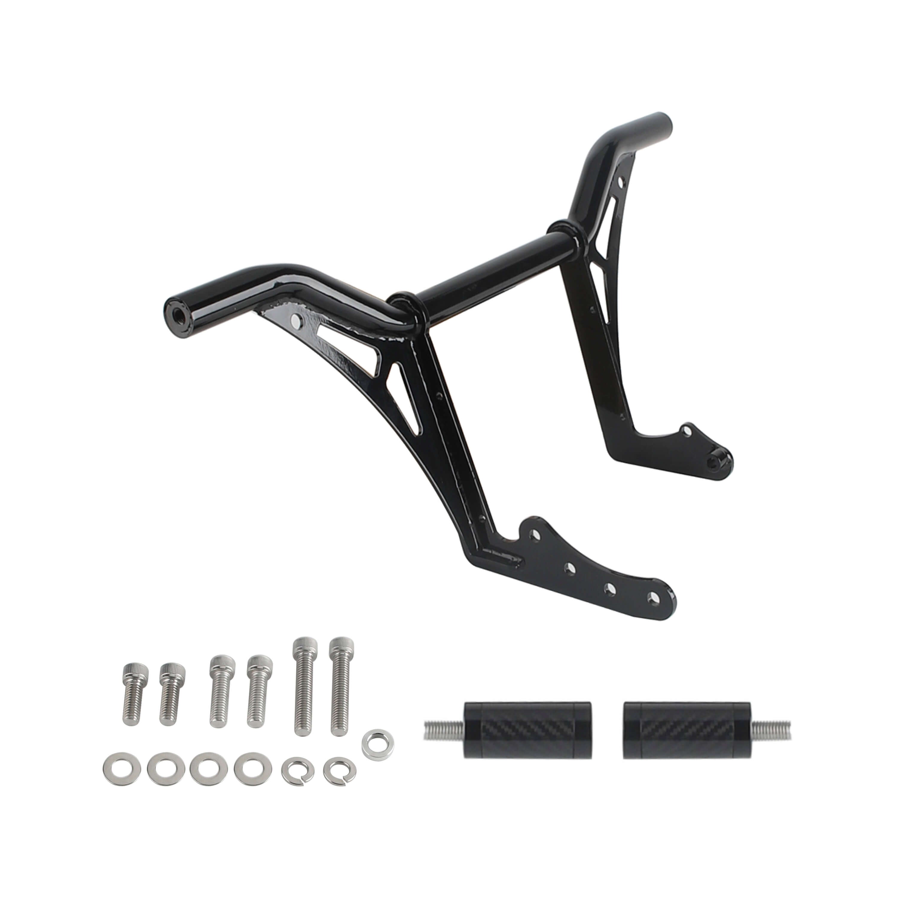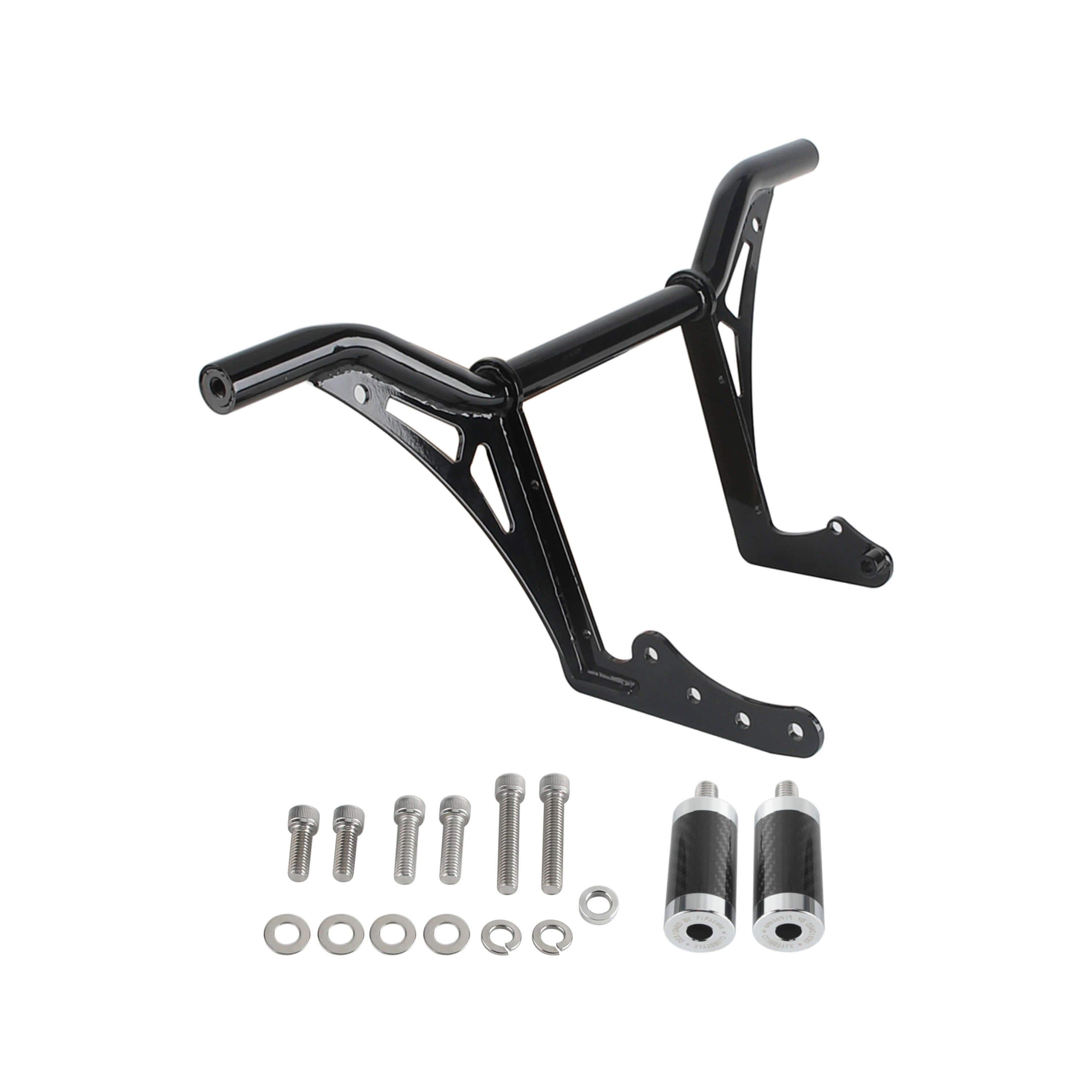 The crash bar takes the place of the bolt-on highway pegs and serves the same function, but it also features Delrin sliders on the ends to help the bike slide over the pavement instead of taking hold of the bike while it is sliding causing it to the high side.
