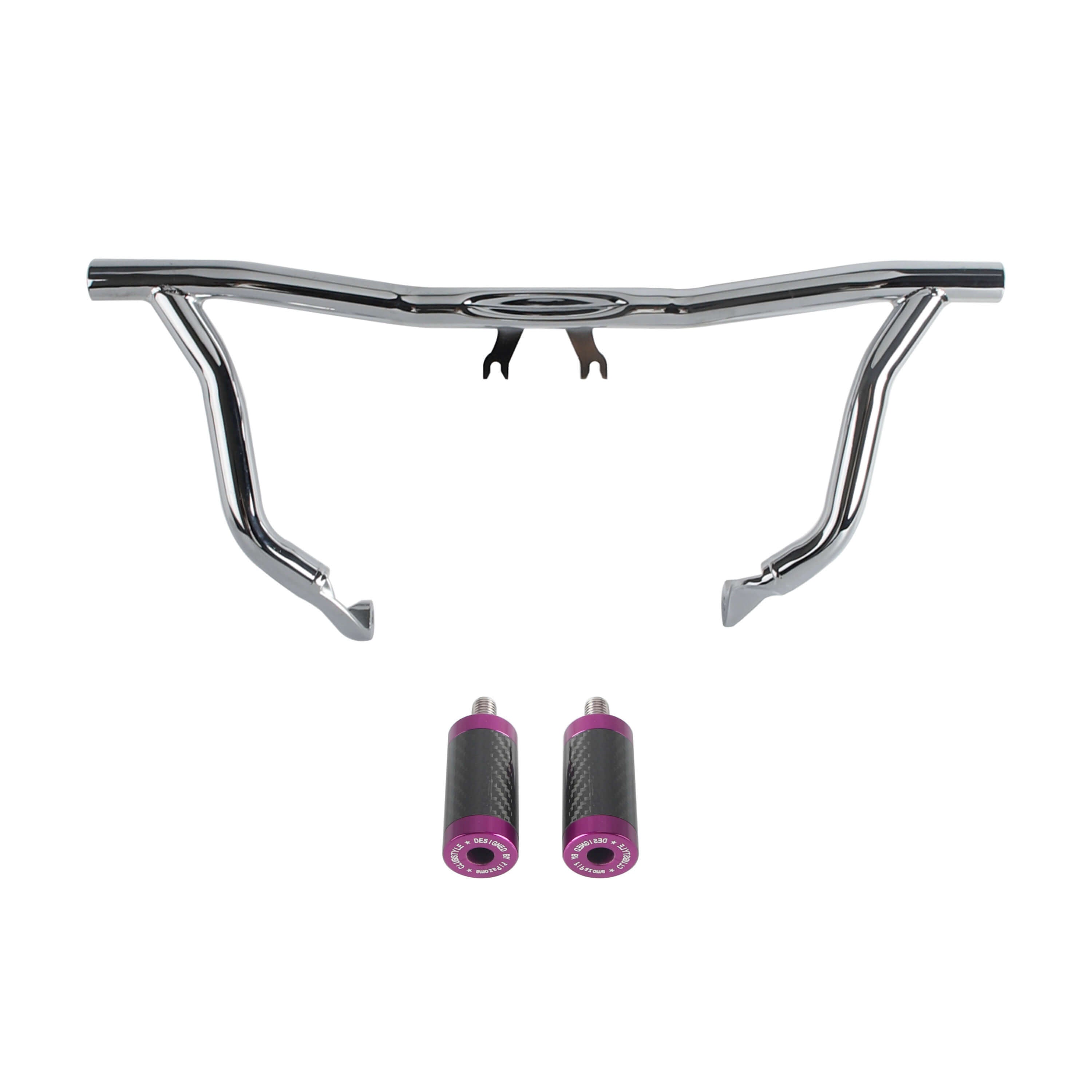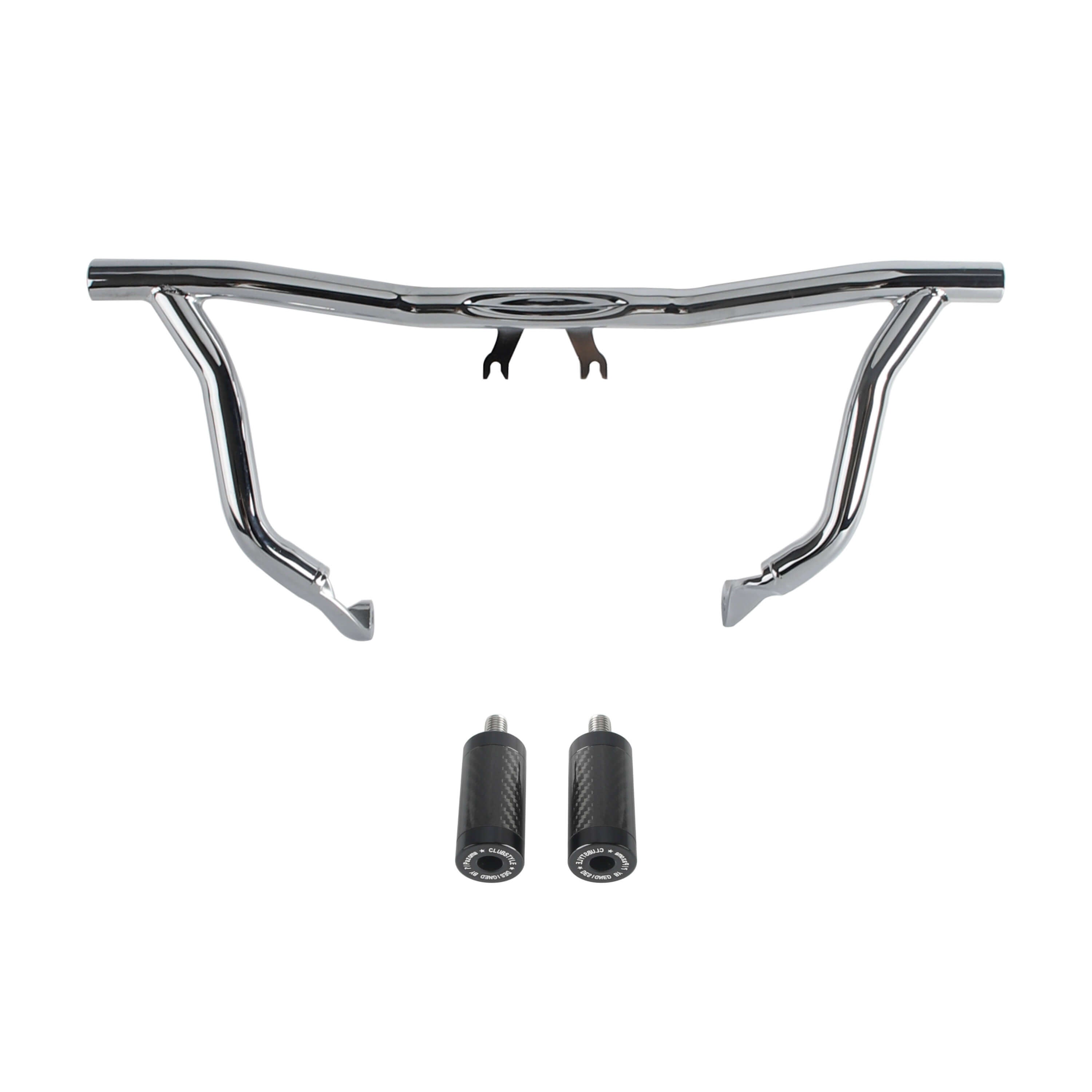 The crash bar takes the place of the bolt-on highway pegs and serves the same function, but it also features Delrin sliders on the ends to help the bike slide over the pavement instead of taking hold of the bike while it is sliding causing it to the high side.