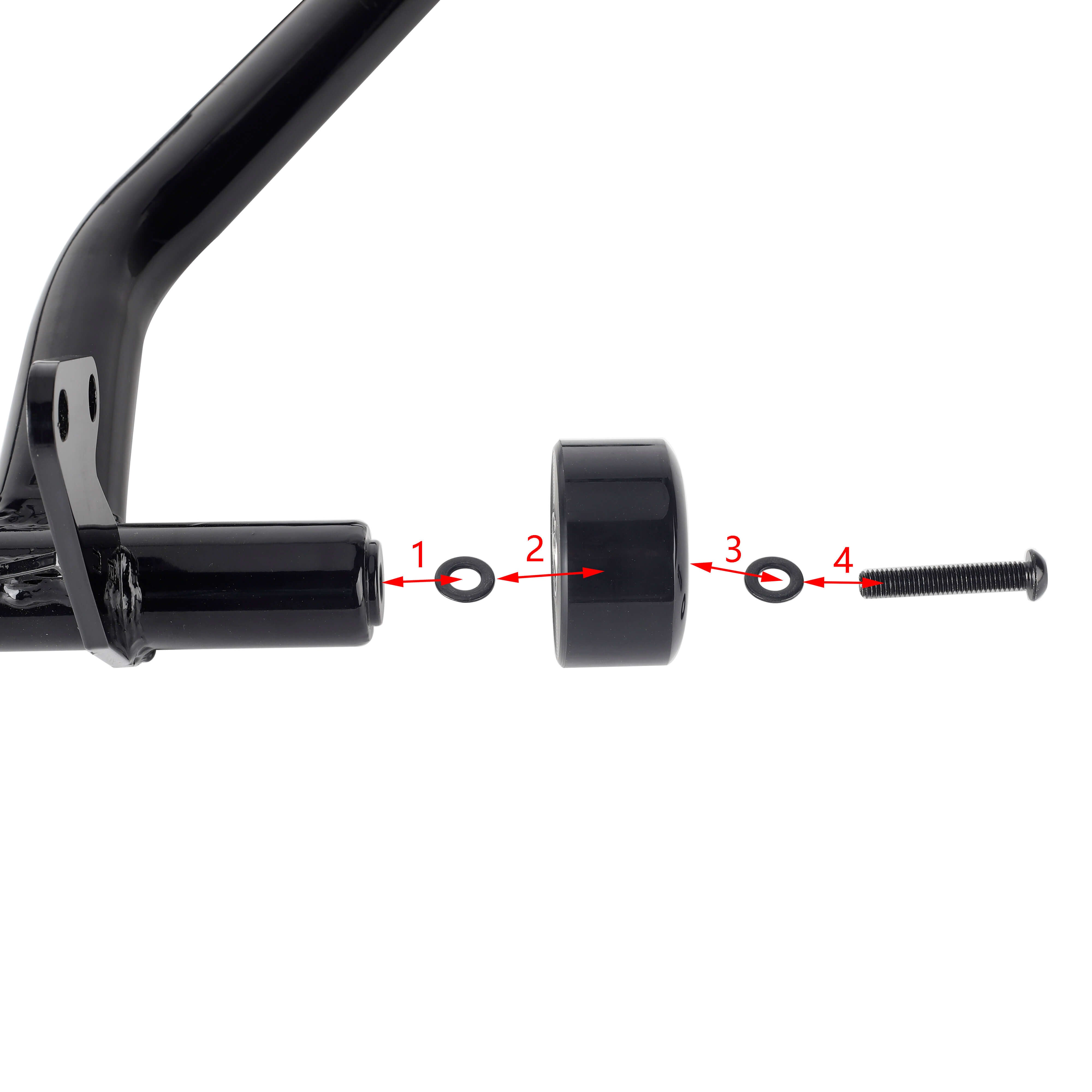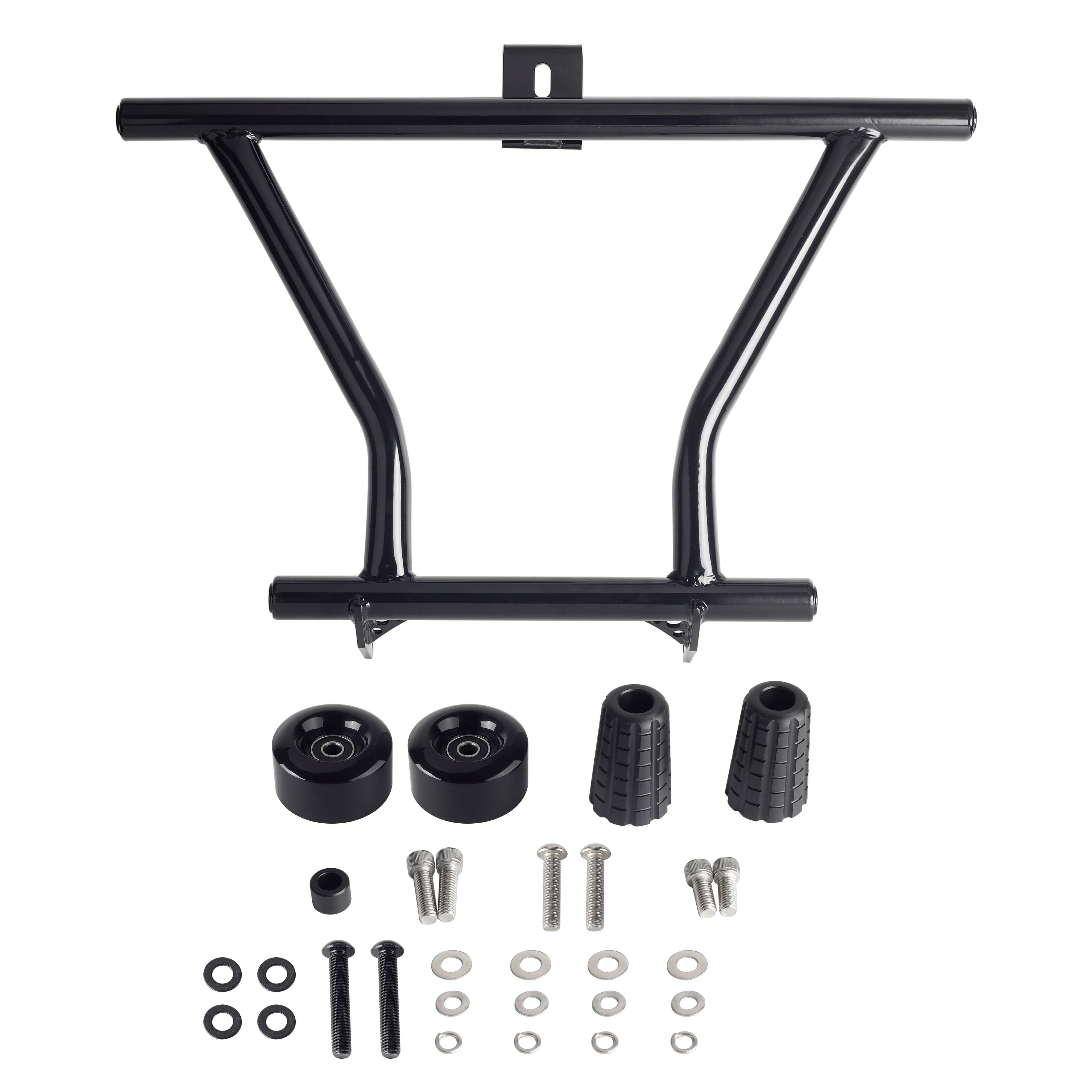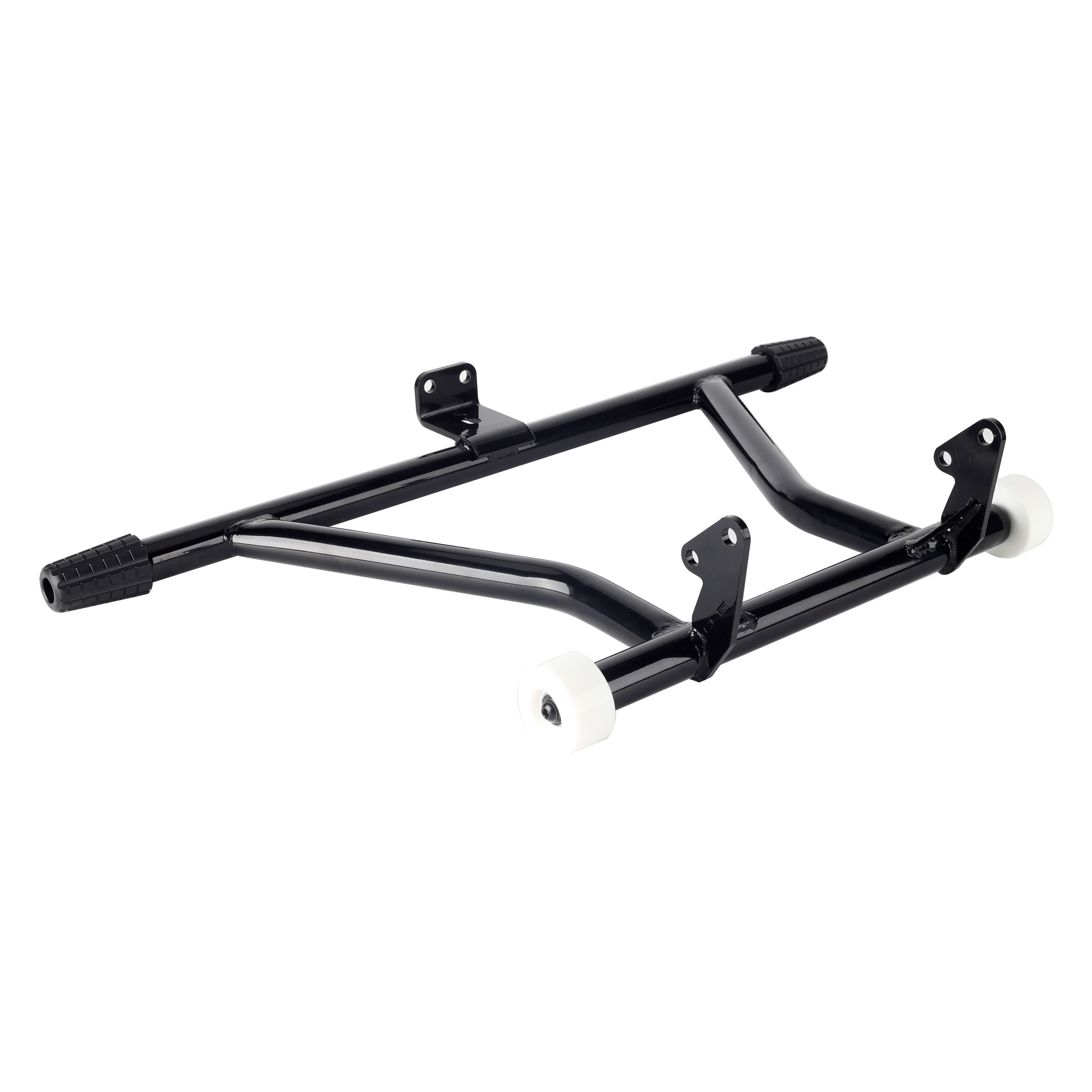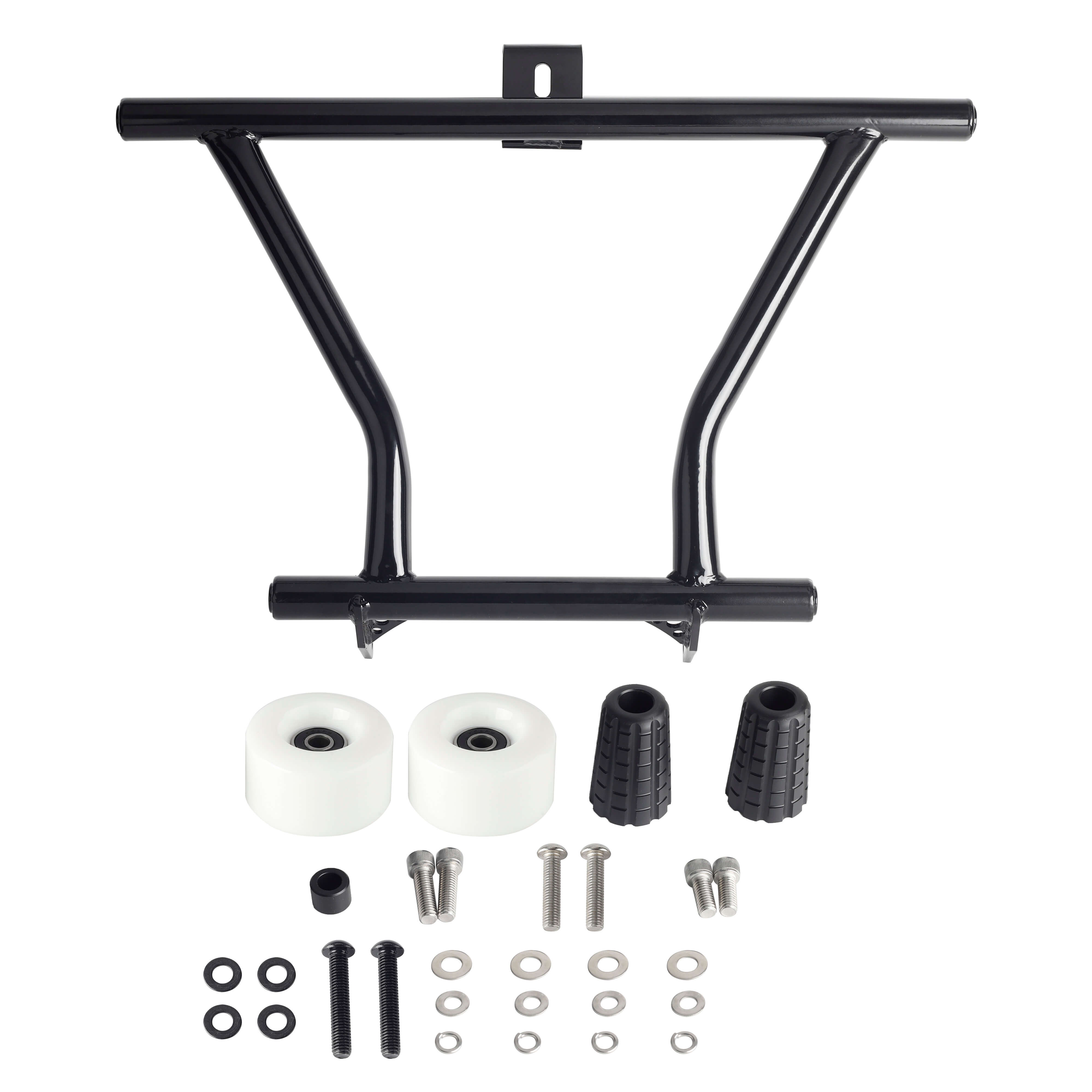The crash bar takes the place of the bolt-on highway pegs and serves the same function, but it also features Delrin sliders on the ends to help the bike slide over the pavement instead of taking hold of the bike while it is sliding causing it to the high side.
