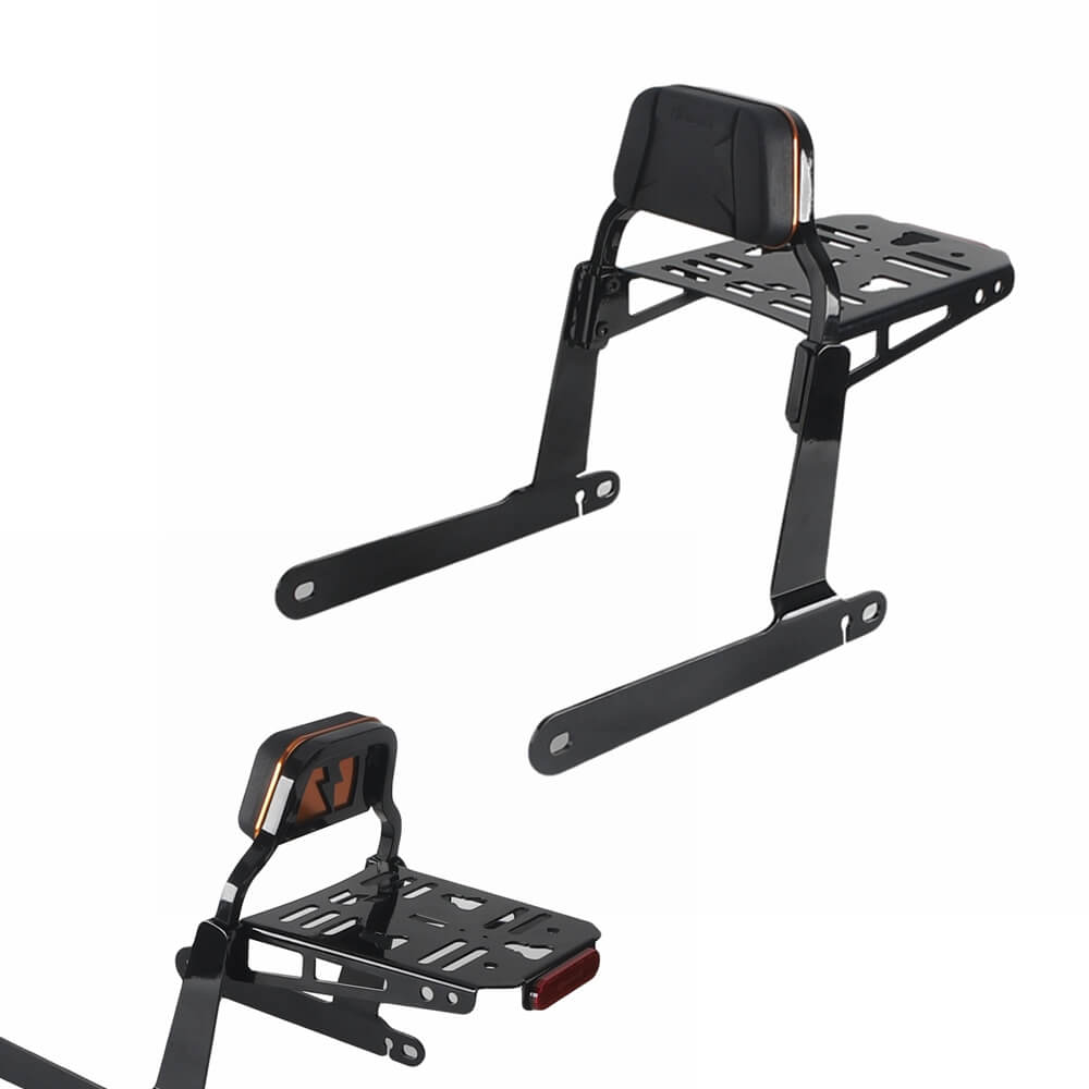 The sissy bar is a low profile, sleek design made to complement the seat and provide passenger lumbar support, while not taking away from the motorbike look, It also helps carry your luggage. All hardware and mount points are concealed within the design.