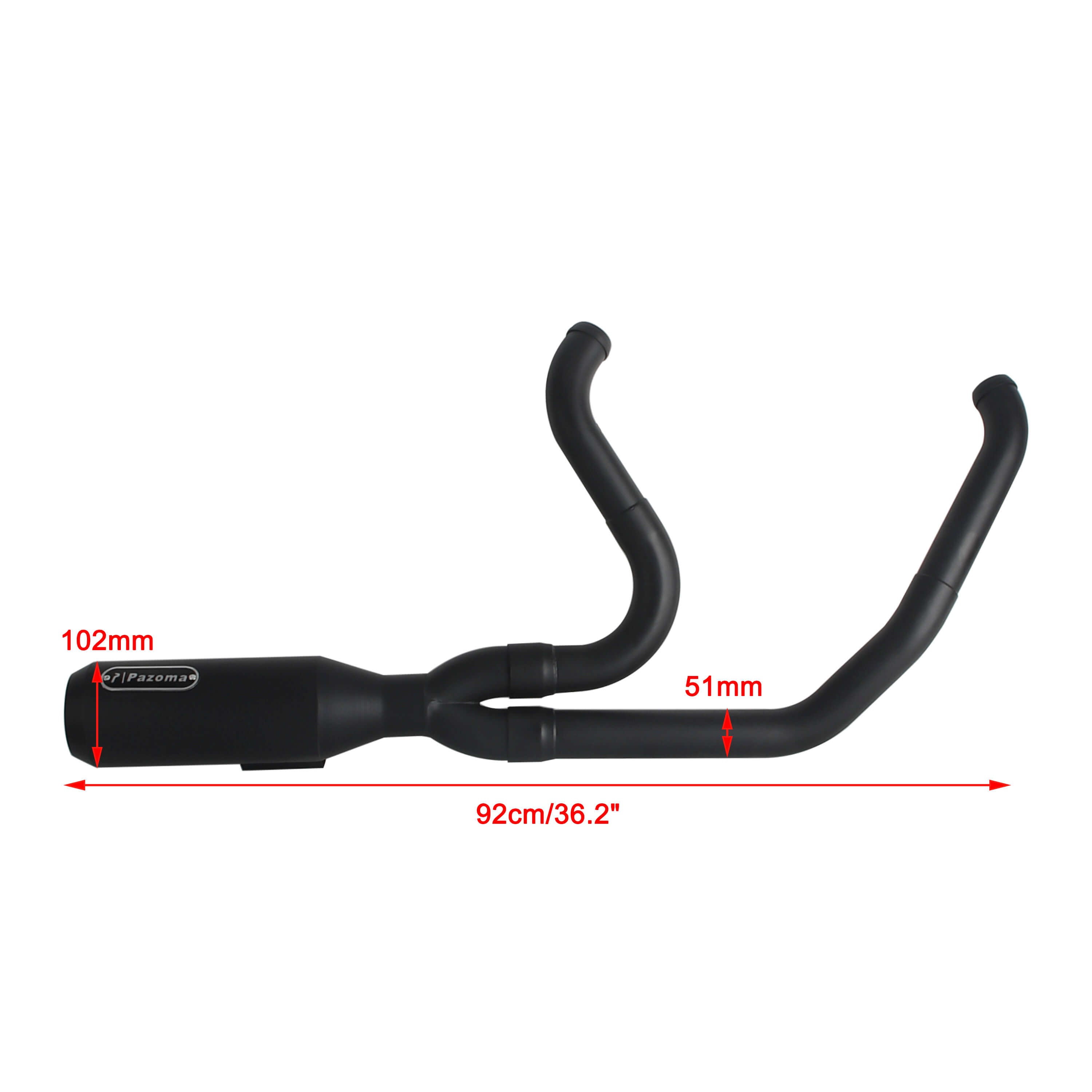 4.1" Torpedo Shape Big Bore Muffler with a 2.3" Perforated Baffle and High-temperature sound-absorbing cotton for increased torque and a deep tone.