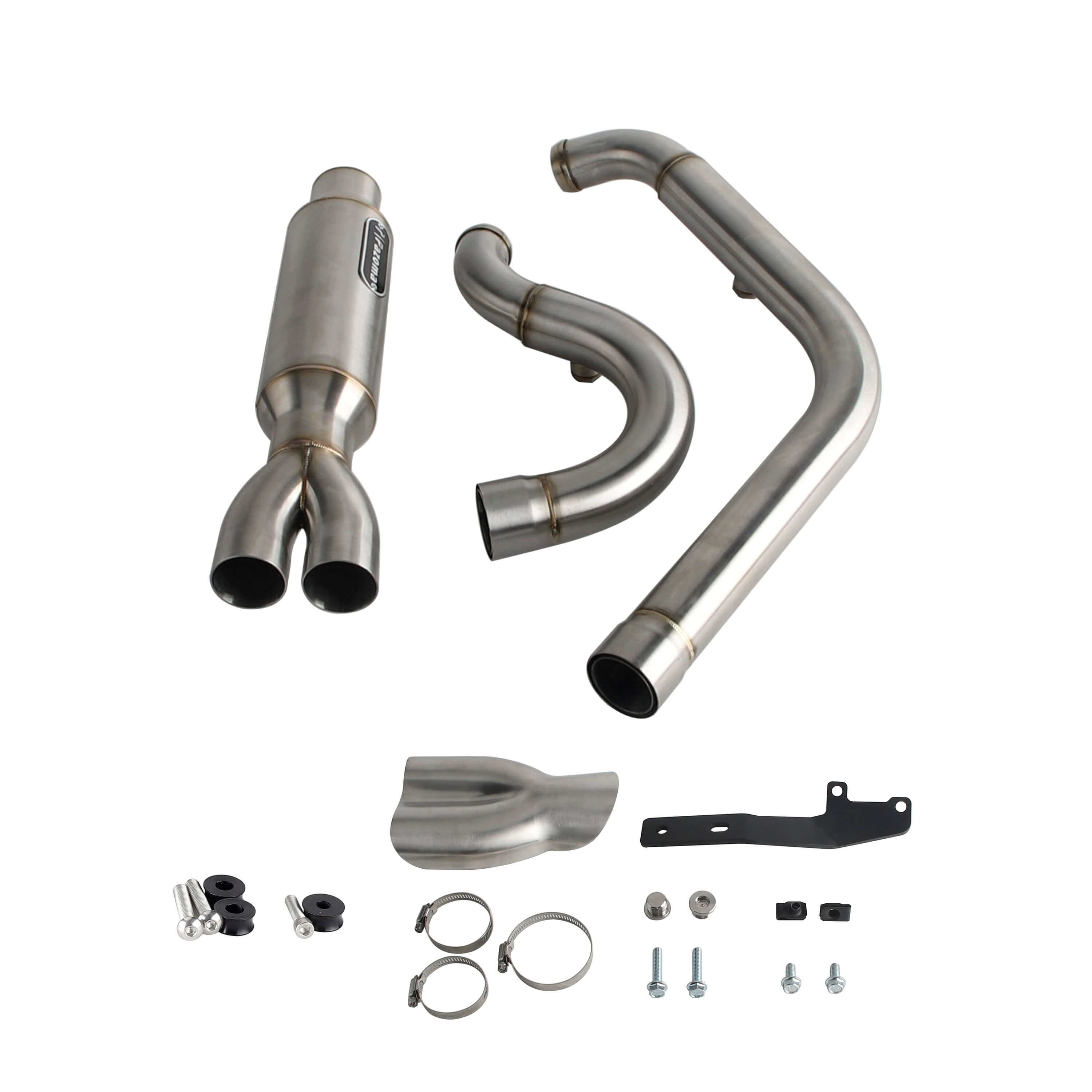 Stepped 1 3/4" to 2" head pipes. Featuring a Big Bore header, high-flow merge, and muffler design, This Exhaust creates a broad torque range and an impressive horsepower curve, ensuring an exhilarating riding experience.