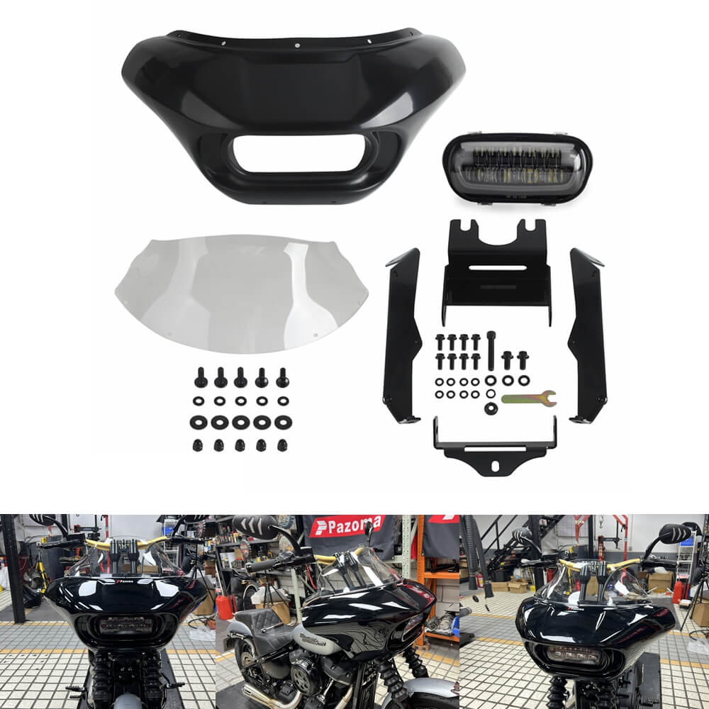 For Harley Softail M8 Street Bob Low Rider Standard Club Style Headlight Fairing Front Mask with LED Headlamp Daytime Running Lights & Turn Signals 2018-2025