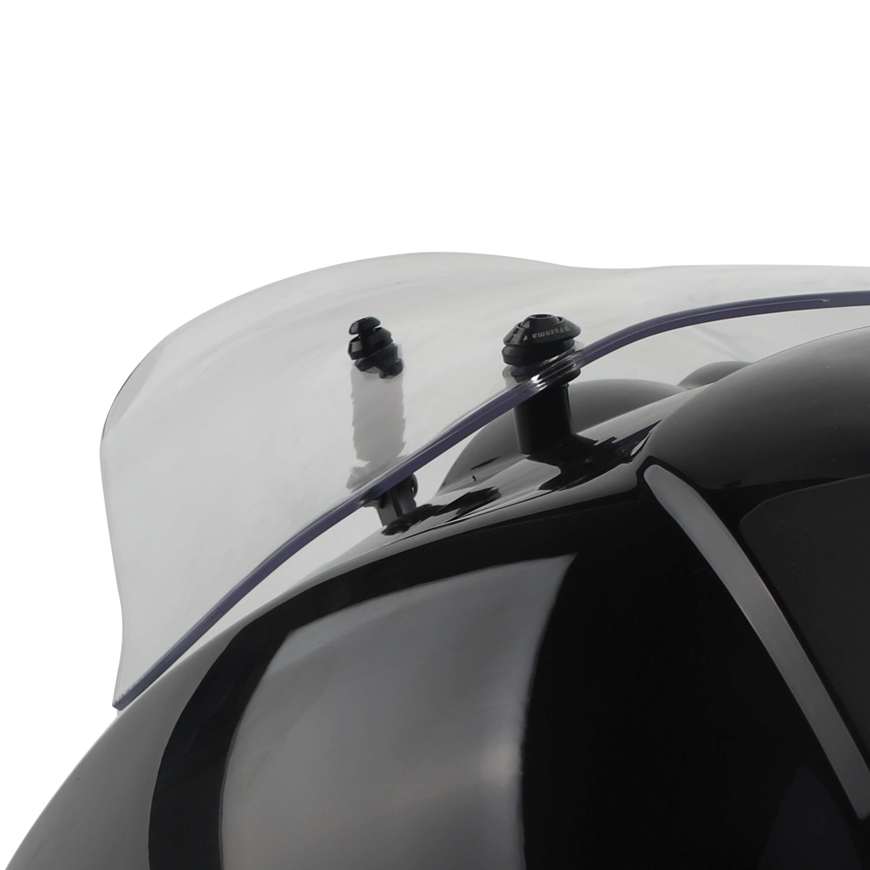 Fairing With Anti-Buffeting Kit. This hardware kit will move the bottom portion of the windshield out away from the shell, allowing wind to enter the inside of the windshield. This "inside wind" will project upwards, pushing the "outside wind" up higher away from your helmet, which will reduce wind buffeting.