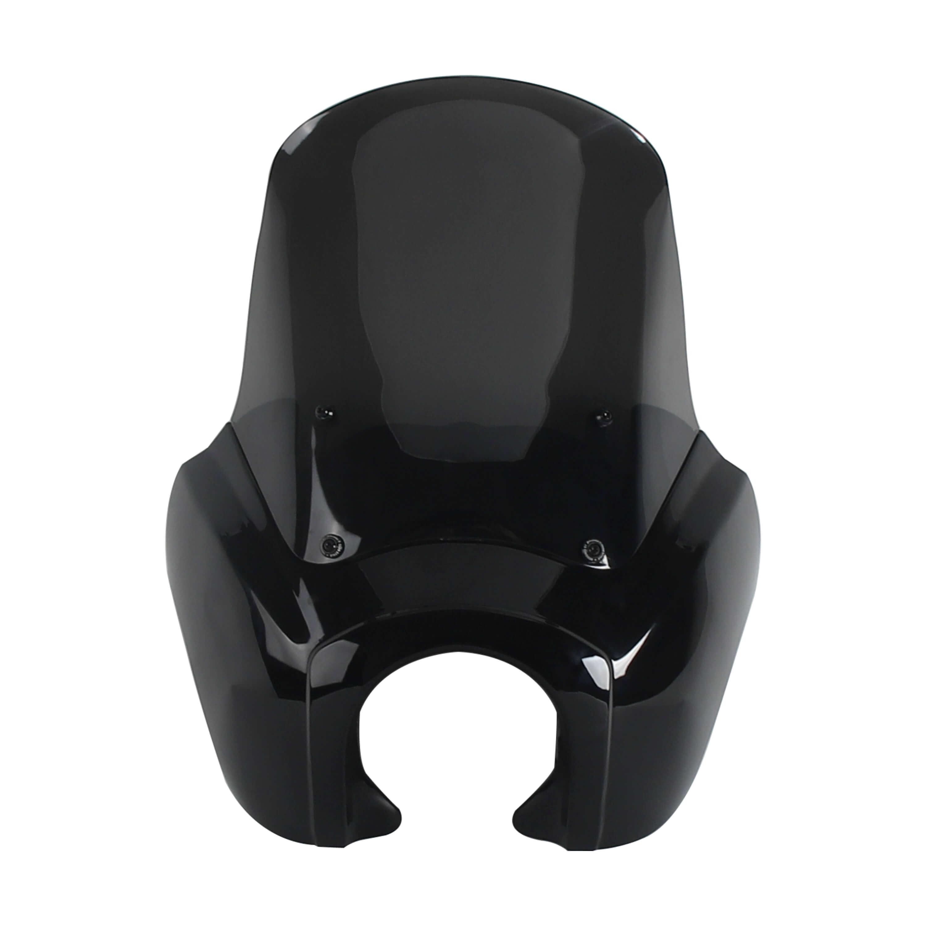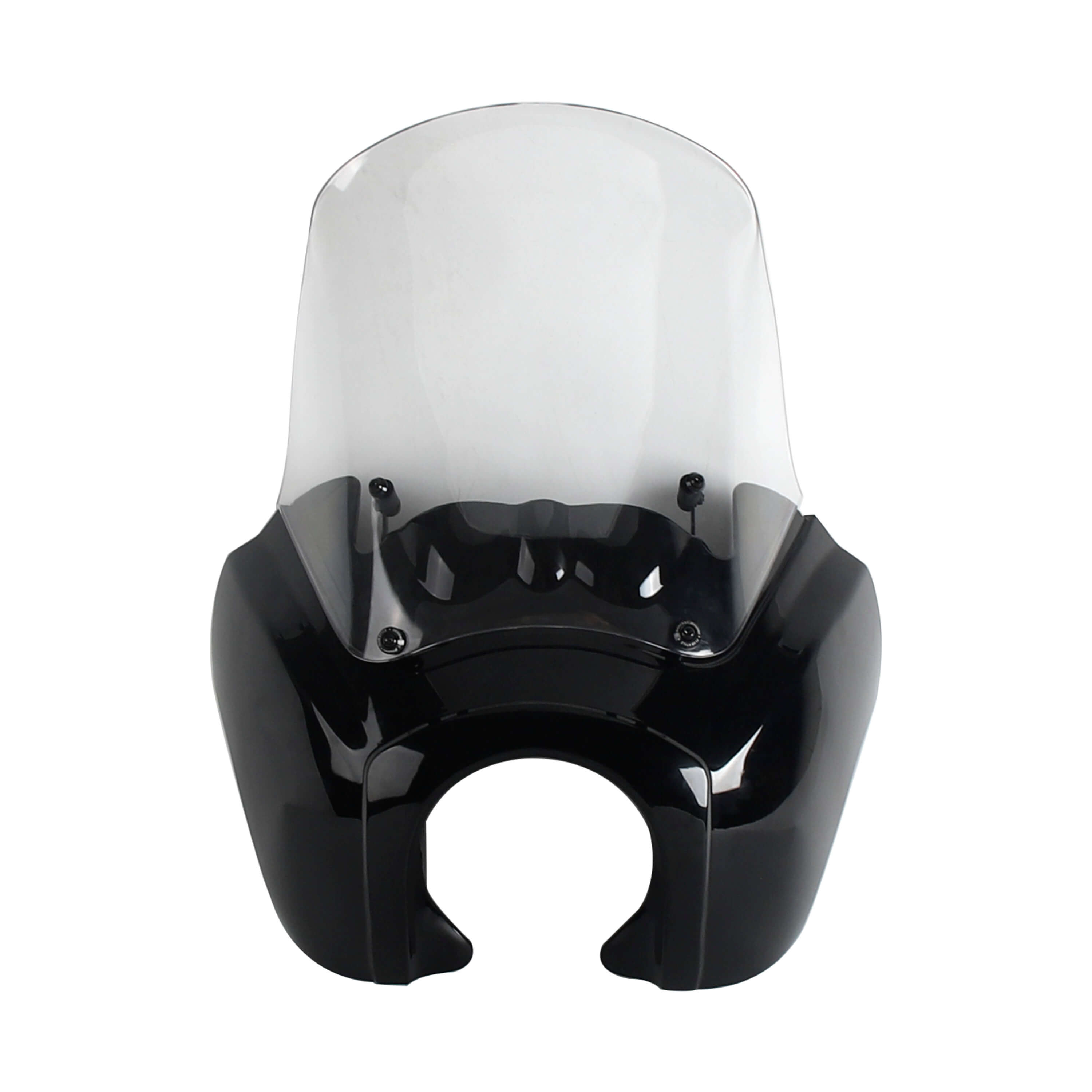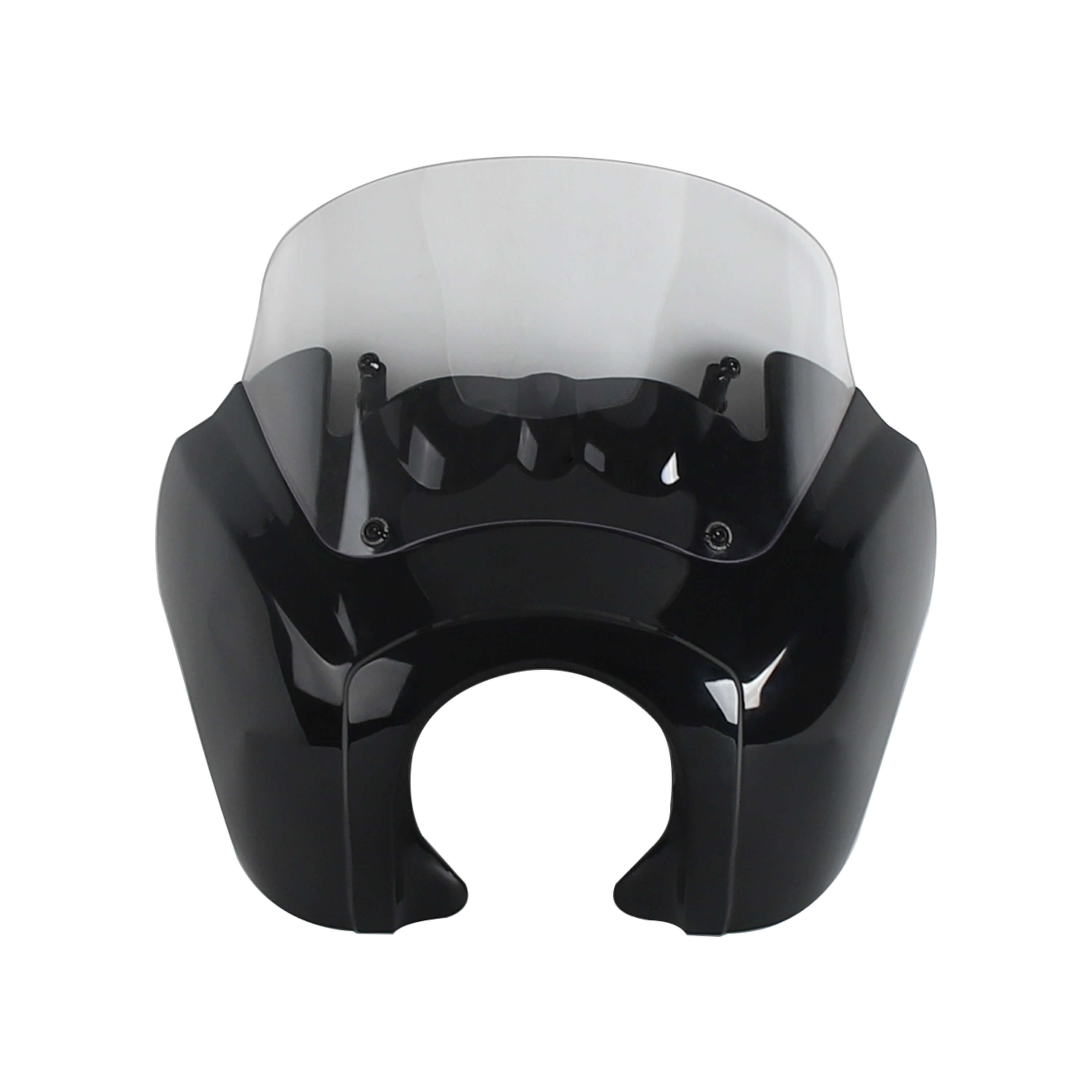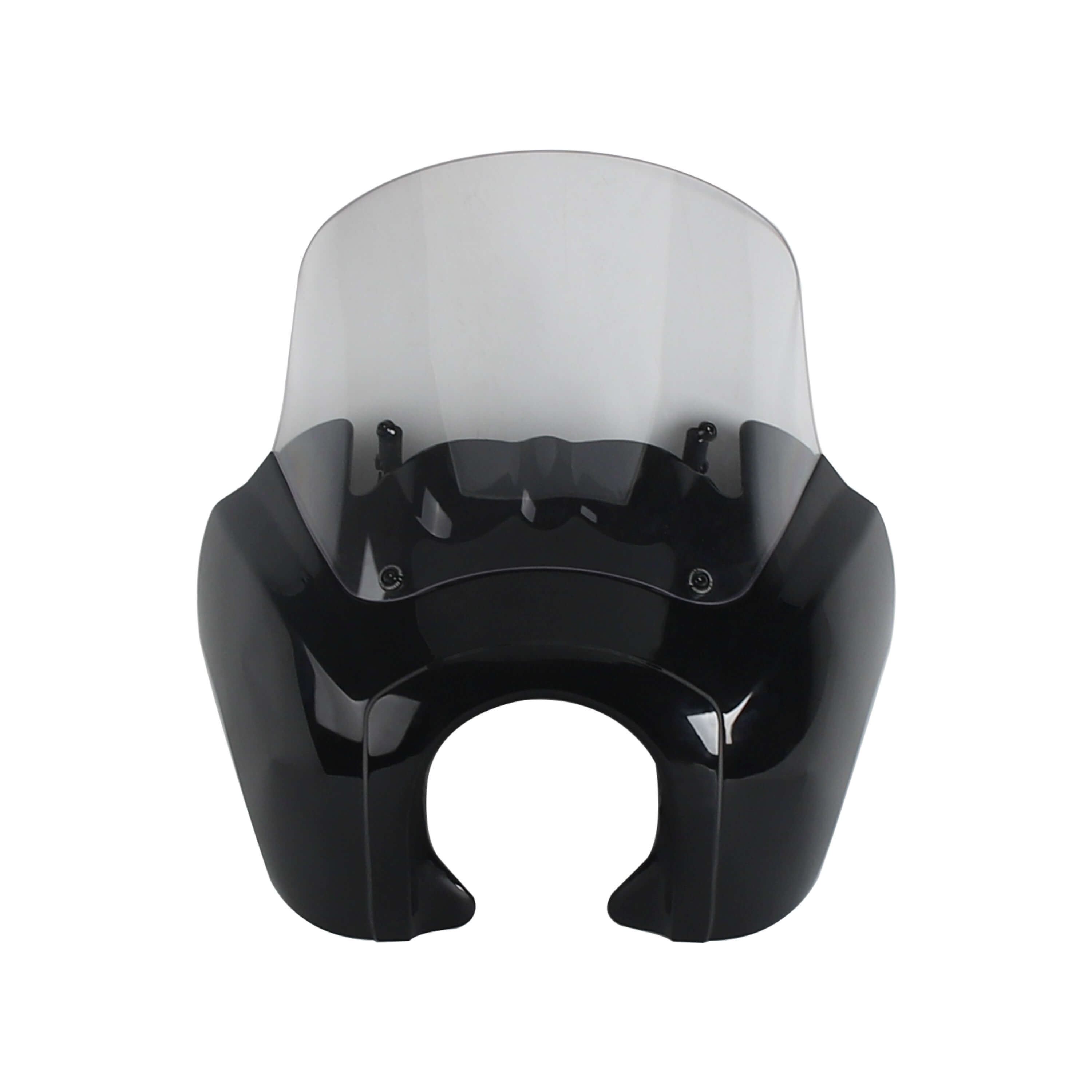 The Front Fairing with 15" or 12" or 9" windscreen that is adjustable and features a clean aerodynamic lip for airflow that goes over your head as you ride...