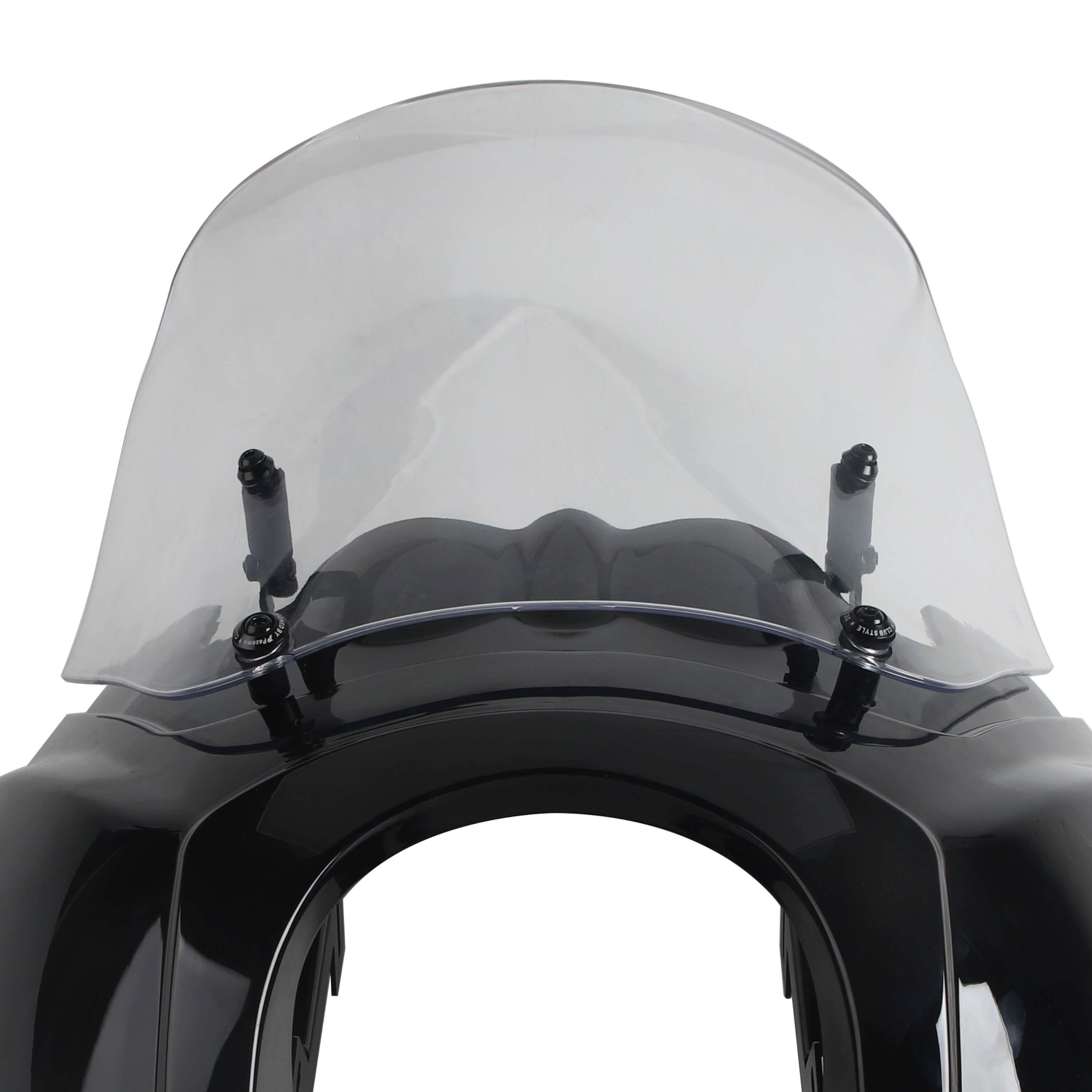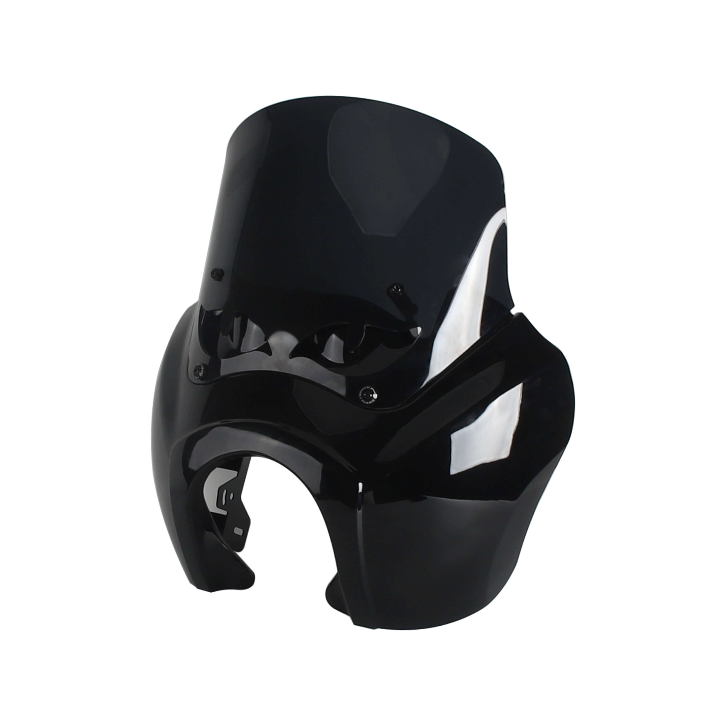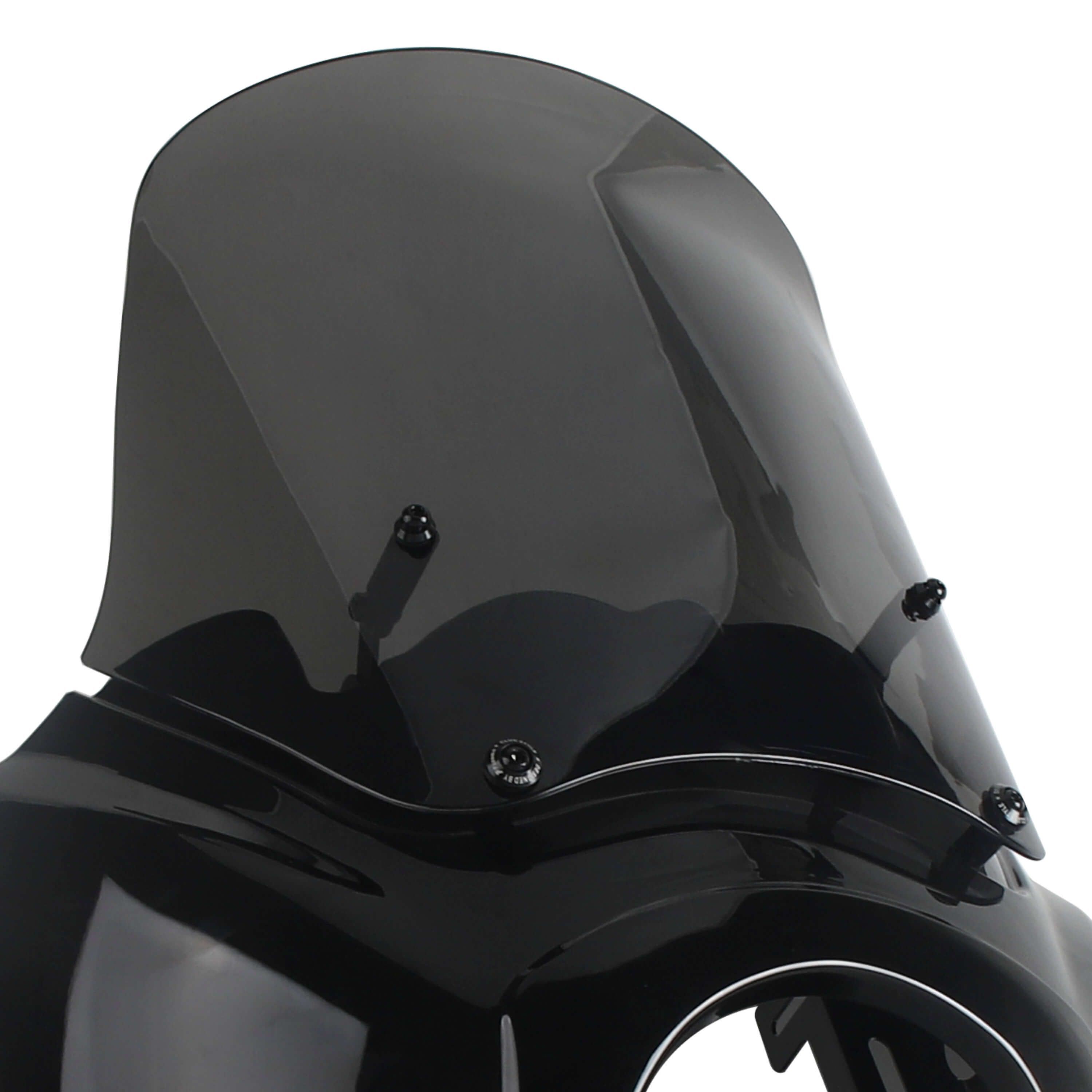 The Front Fairing with 15" or 12" or 9" windscreen that is adjustable and features a clean aerodynamic lip for airflow that goes over your head as you ride...