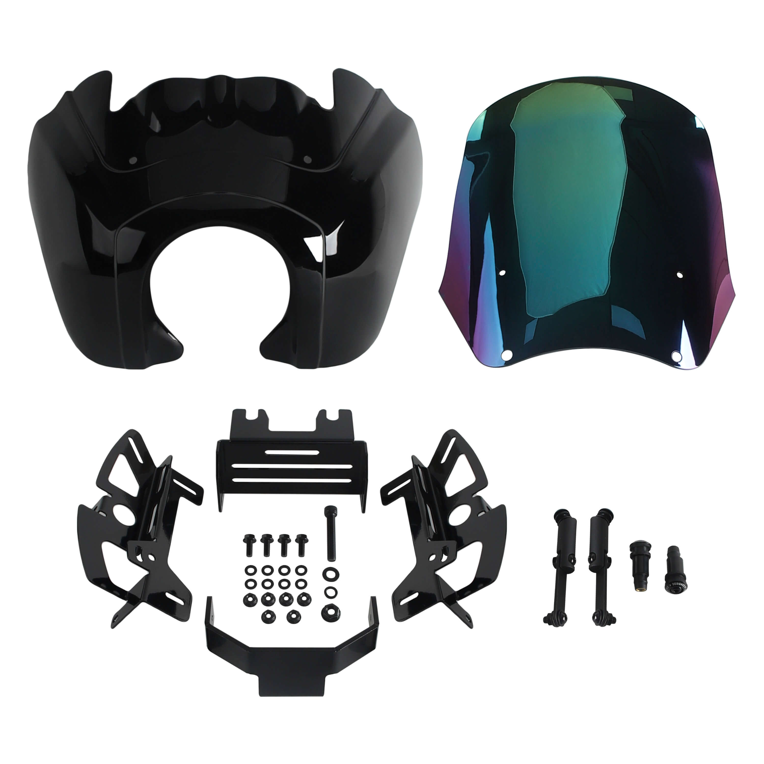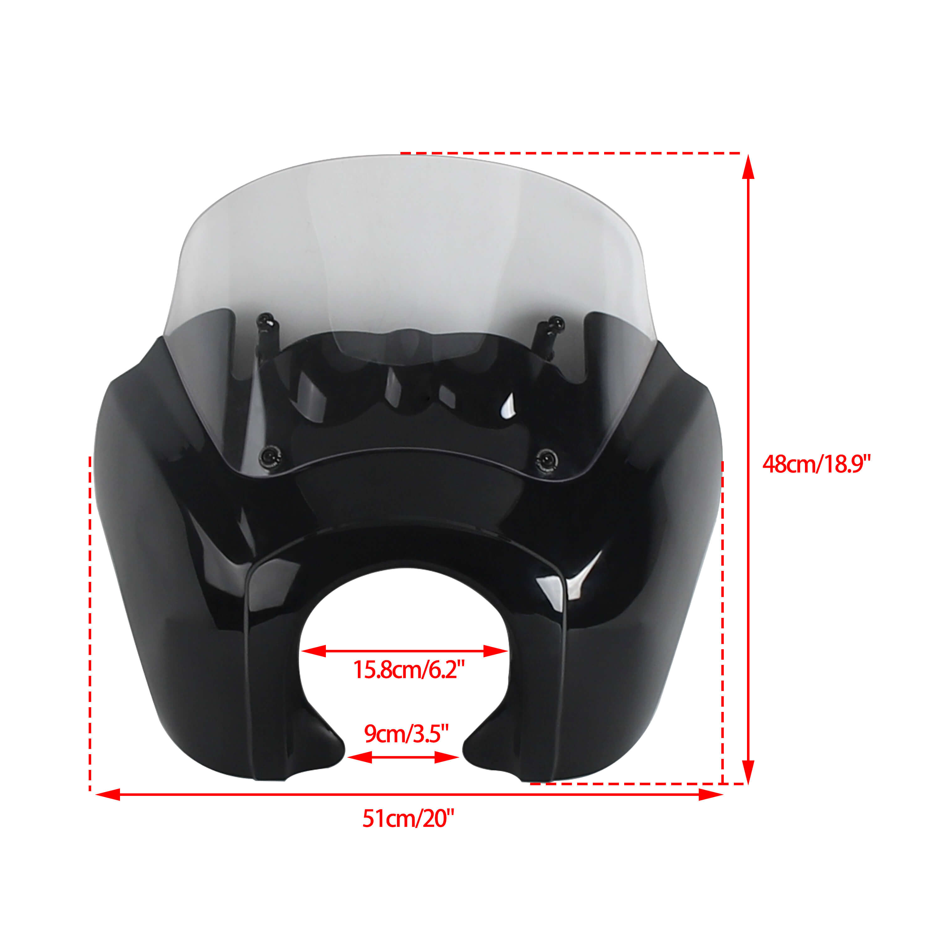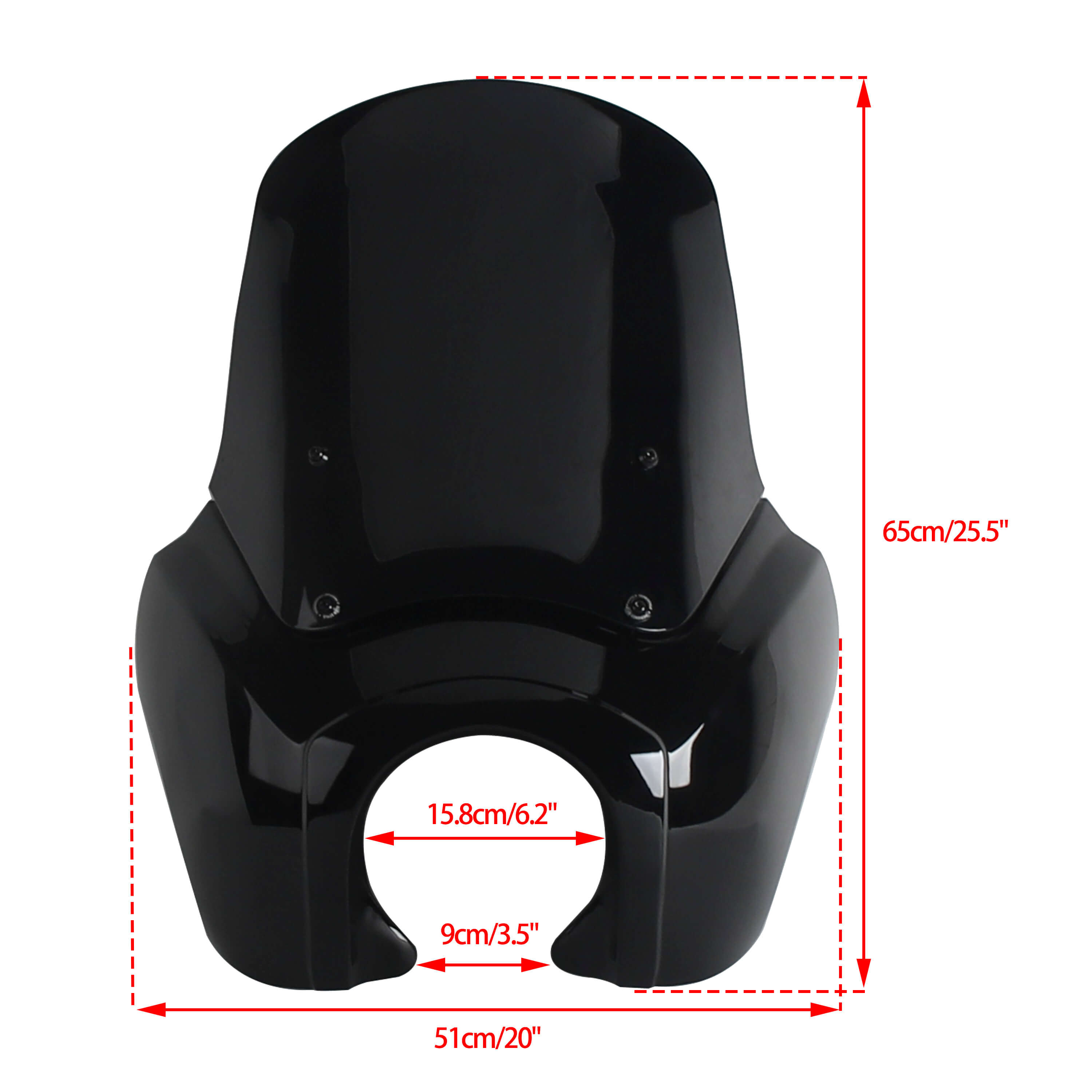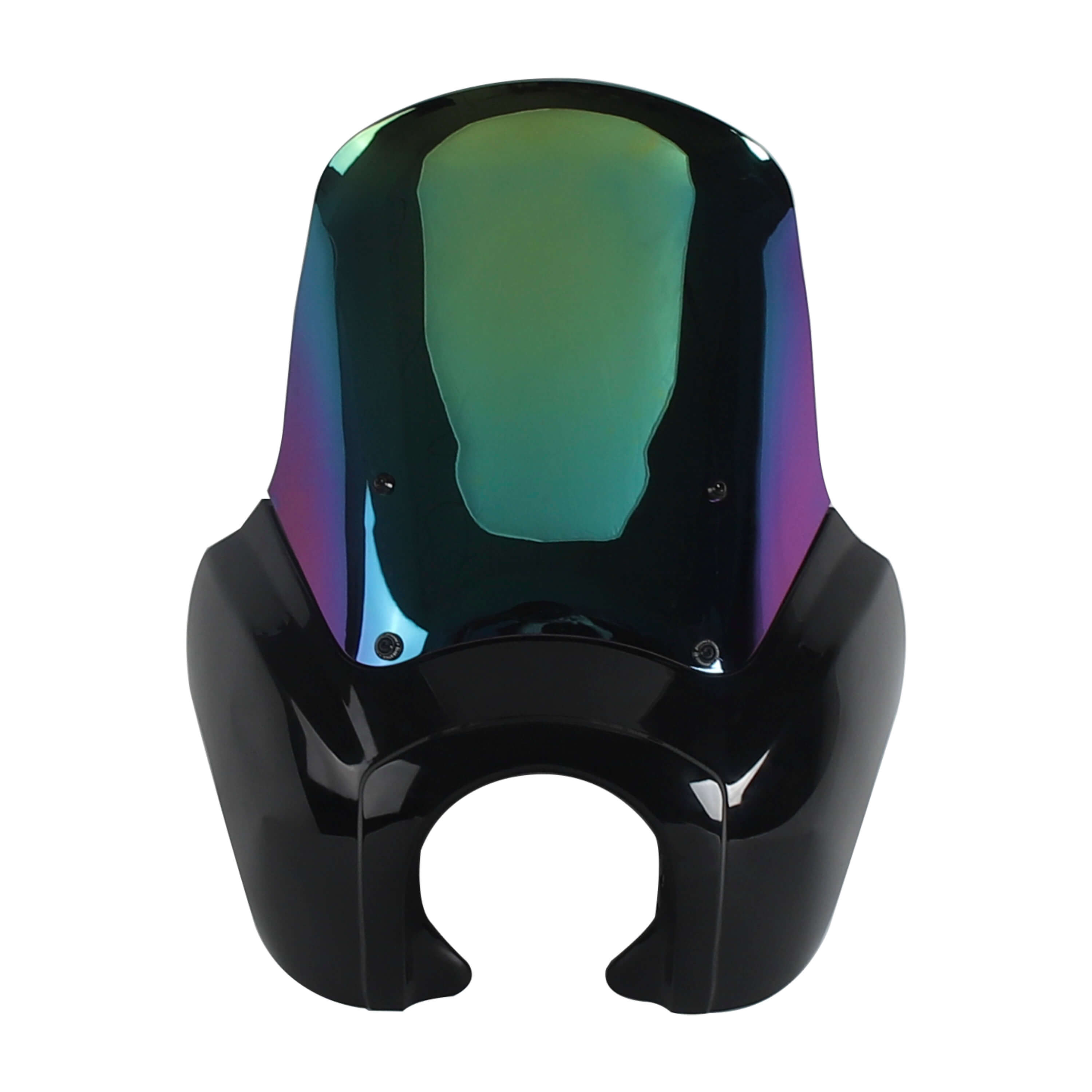 The Front Fairing with 15" or 12" or 9" windscreen that is adjustable and features a clean aerodynamic lip for airflow that goes over your head as you ride...