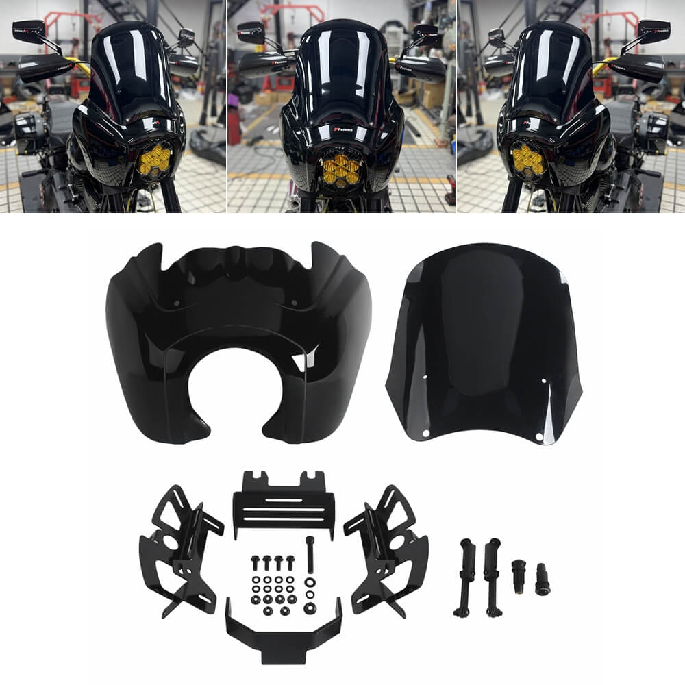 Club Style Front Headlight Fairing Windshield w/Baja Designs LP6 Lighting Bracket Mounting Kit For Harley Softail M8 Street Bob Low Rider Standard 2018-2026