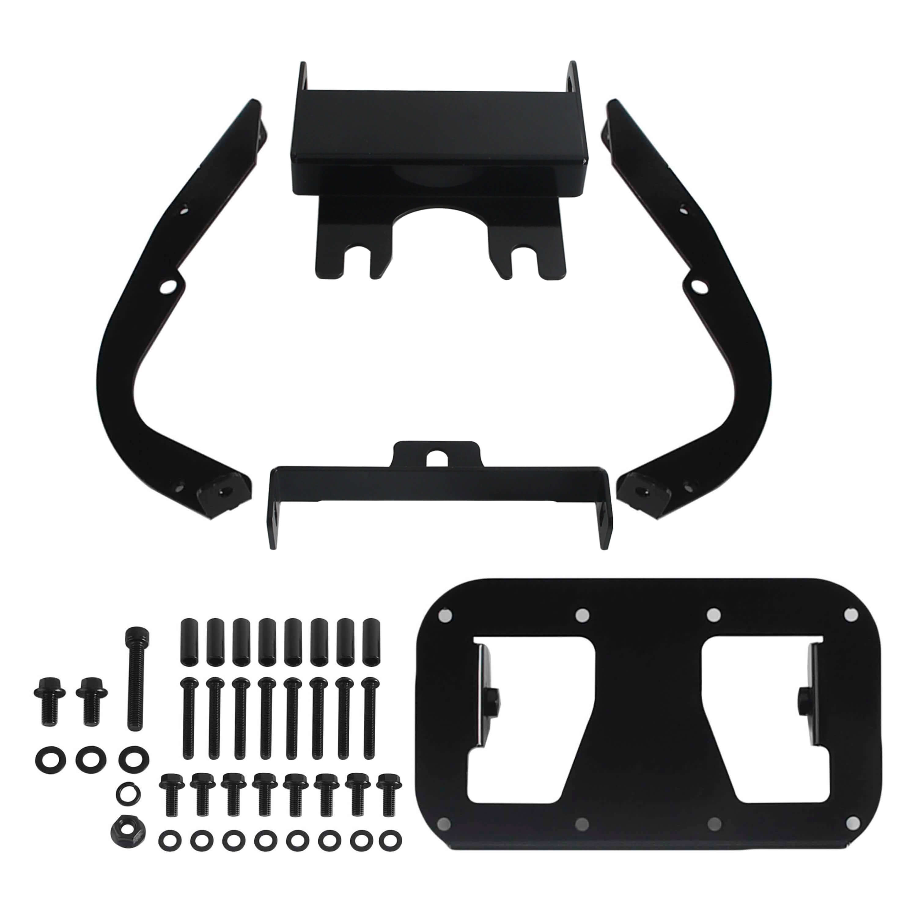 These brackets are powder-coated with a black finish. Mounting nuts/bolts/washers are included as well.