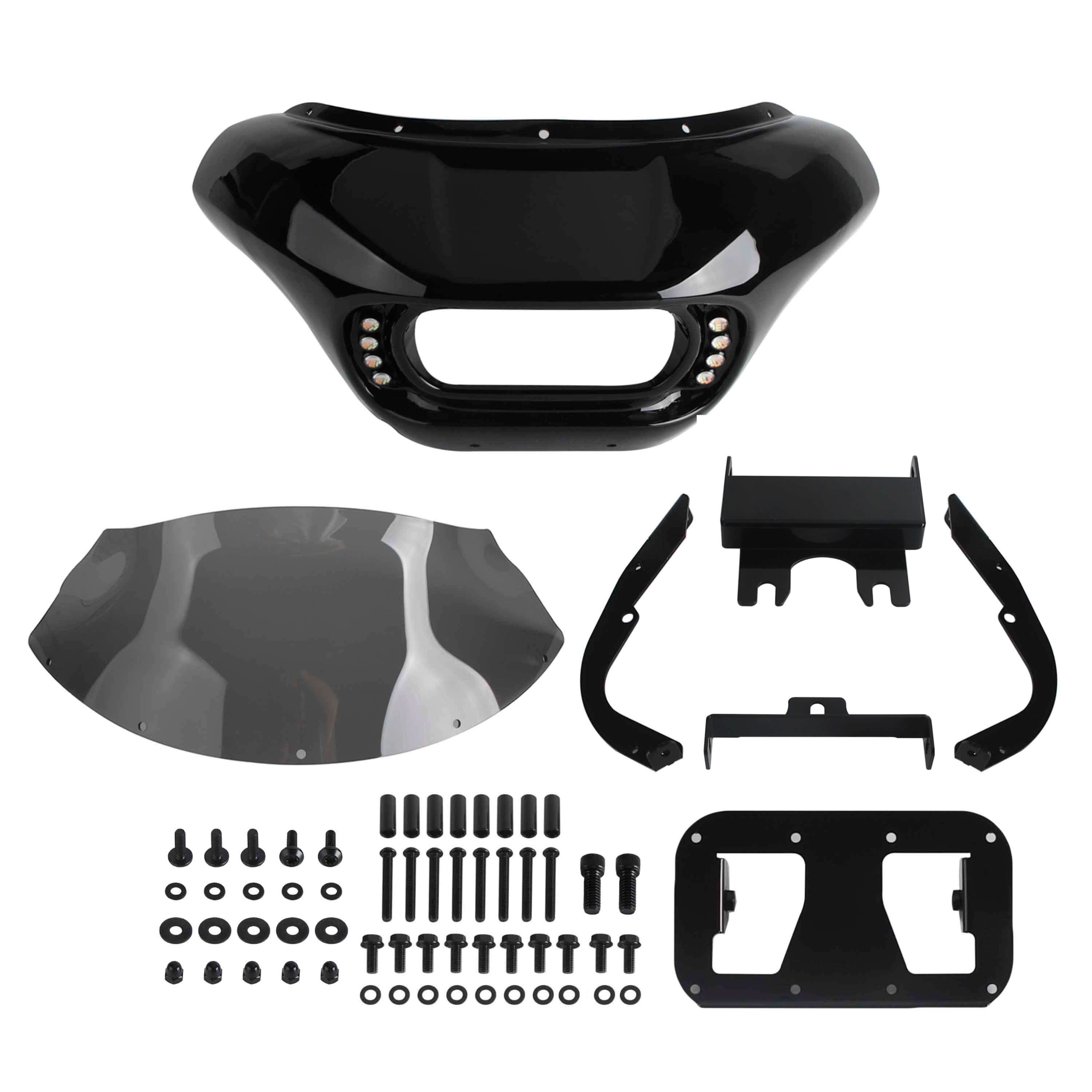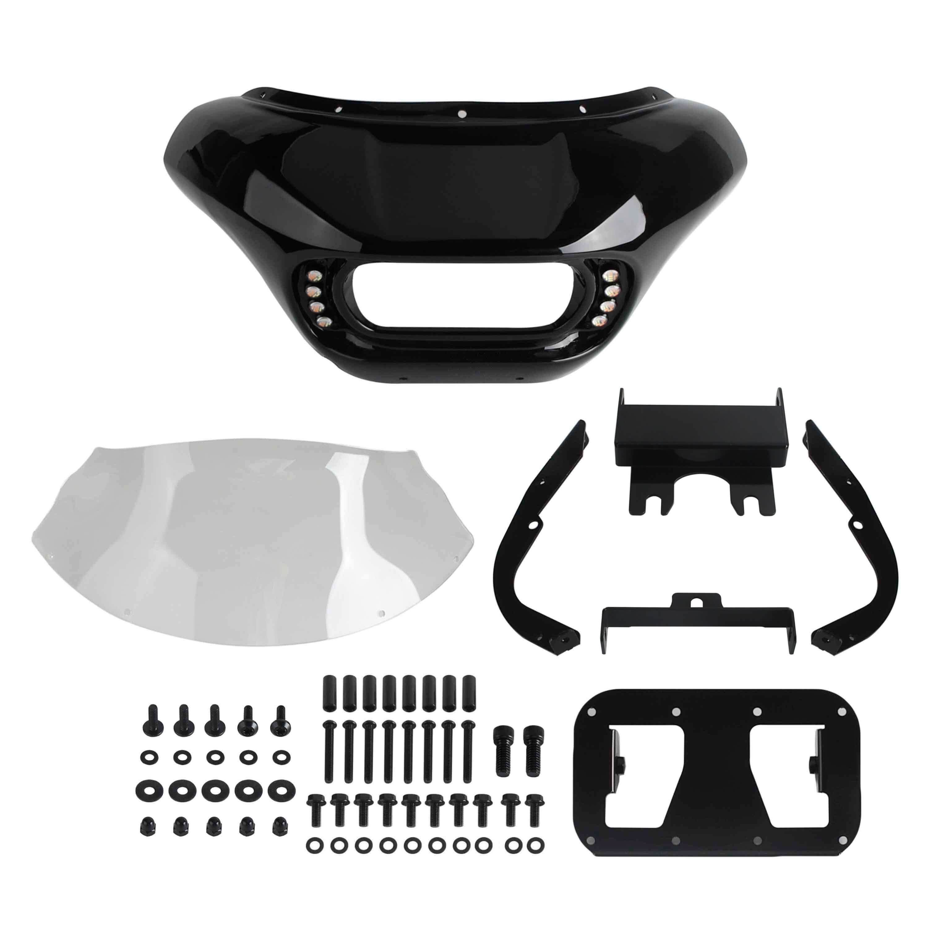 Club Style Front Shark Headlight Fairing Windshield w/Baja Designs Dual LP4 Lighting Bracket Mounting Kit For Harley Dyna Low Rider Street Bob Fat Bob